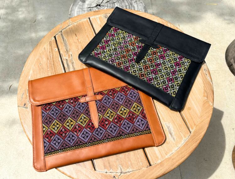 伝統刺繍×イタリア本革の書類・PC Case。(写真1枚目の刺繍のアイテムです)