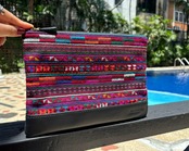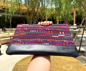 Big Pouch No.8【アカ族】伝統刺繍×イタリア本革 (iPad miniが入るサイズ)